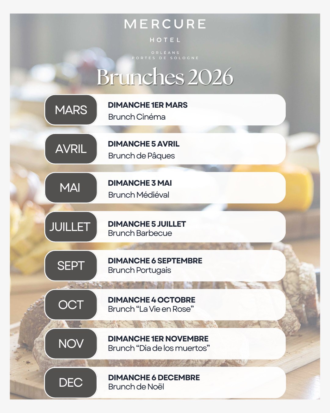 Every month, an unforgettable atmosphere, experience and brunch