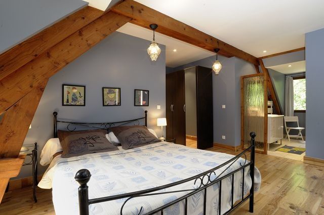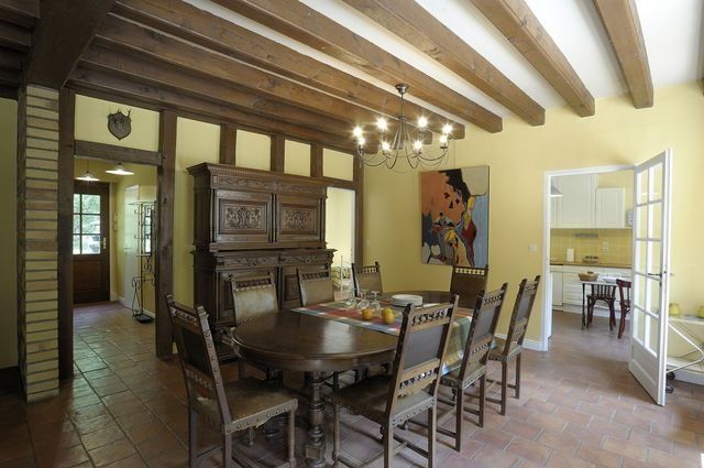 A large family house in typical Sologne style offering refinement, peace and quiet. The gîte is well placed for visiting the riches of the Loire Valley, Orléans and the Loire Châteaux (Chambord 35kms). Ground floor: hall, kitchen (tumble drier), large living room/dining room, 2 bedrooms (1 double bed, 2 single beds), shower room, toilet. Upstairs: very large mezzanine, 2 bedrooms (1 large double bed, 2 single beds), 2 shower rooms, 2 toilets. Gas heating, fixed amount from Oct. to Apr. (€20 a day). Deposit. Bathroom linen supplied and beds made up on arrival. Table tennis table.