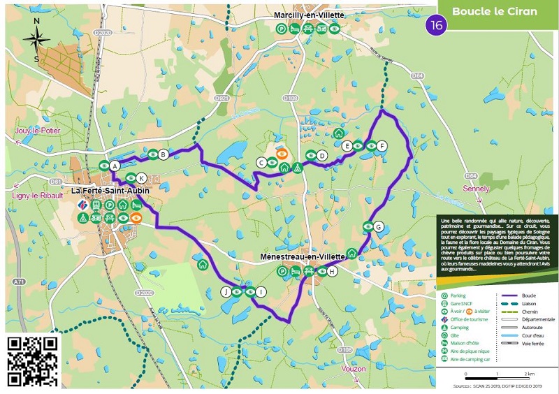 A wonderful walk to discover the natural and historical heritage of the Sologne region… On this trail, you can discover the typical Sologne landscapes. You’ll pass by the famous Domaine du Ciran, which offers educational walks on the local flora and fauna. At La ferme du Ciran, you can sample some of the goat’s cheese produced on-site, or continue on to the famous château at La Ferté-Saint-Aubin.