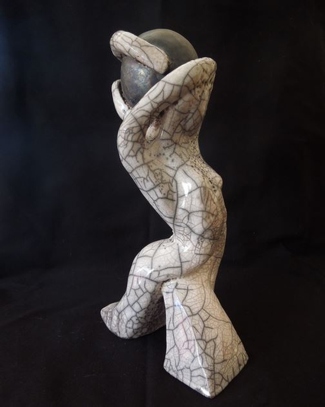 Ses céramiques sont fabriquées à la main dans son atelier et cuite dans un four à gaz selon la technique du Raku, rendant chaque pièce unique.