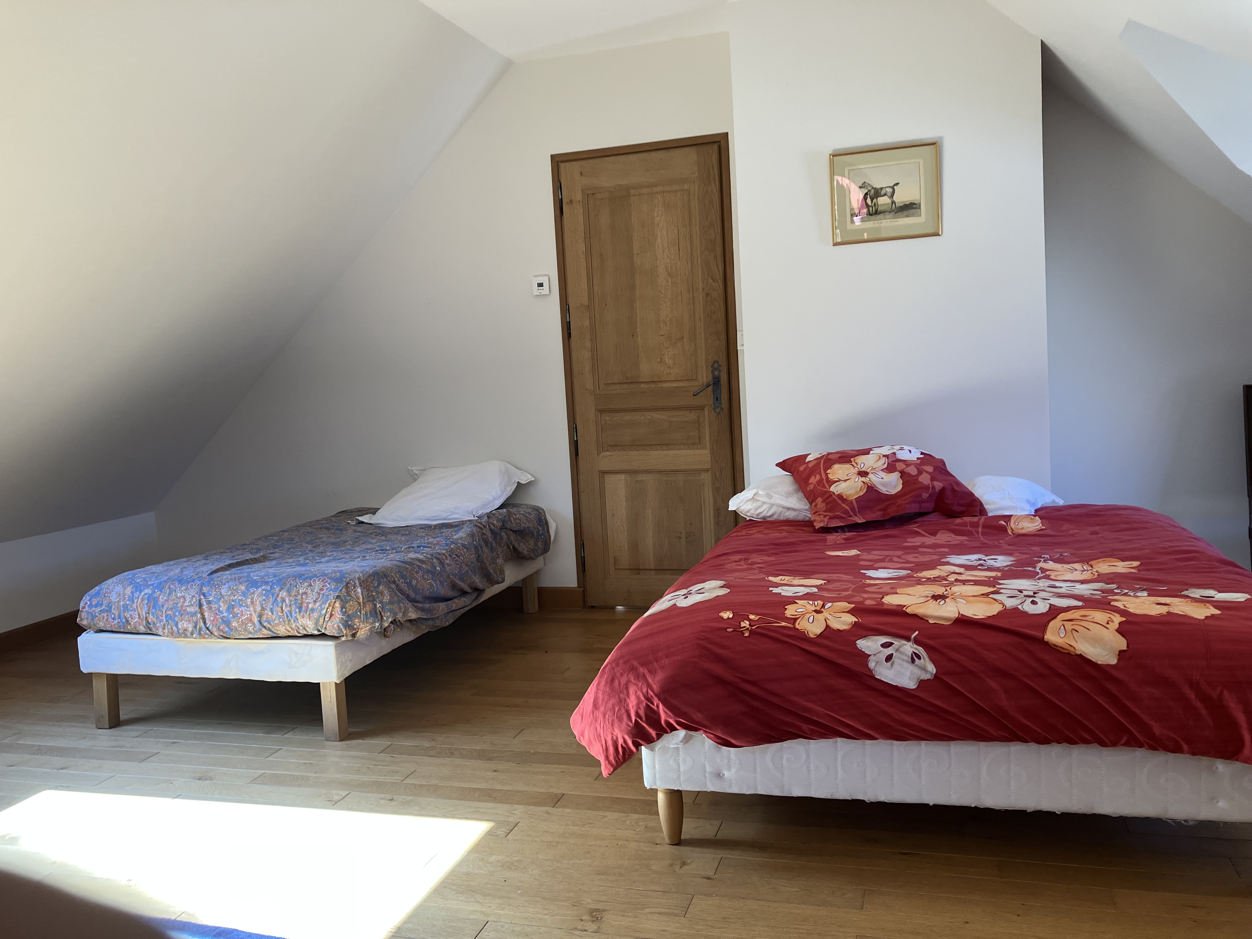 • une chambre familiale, qui dispose d’un lit double confortable (140×190) et d’un lit (90×190) avec une salle de bain privative avec baignoire et WC ;