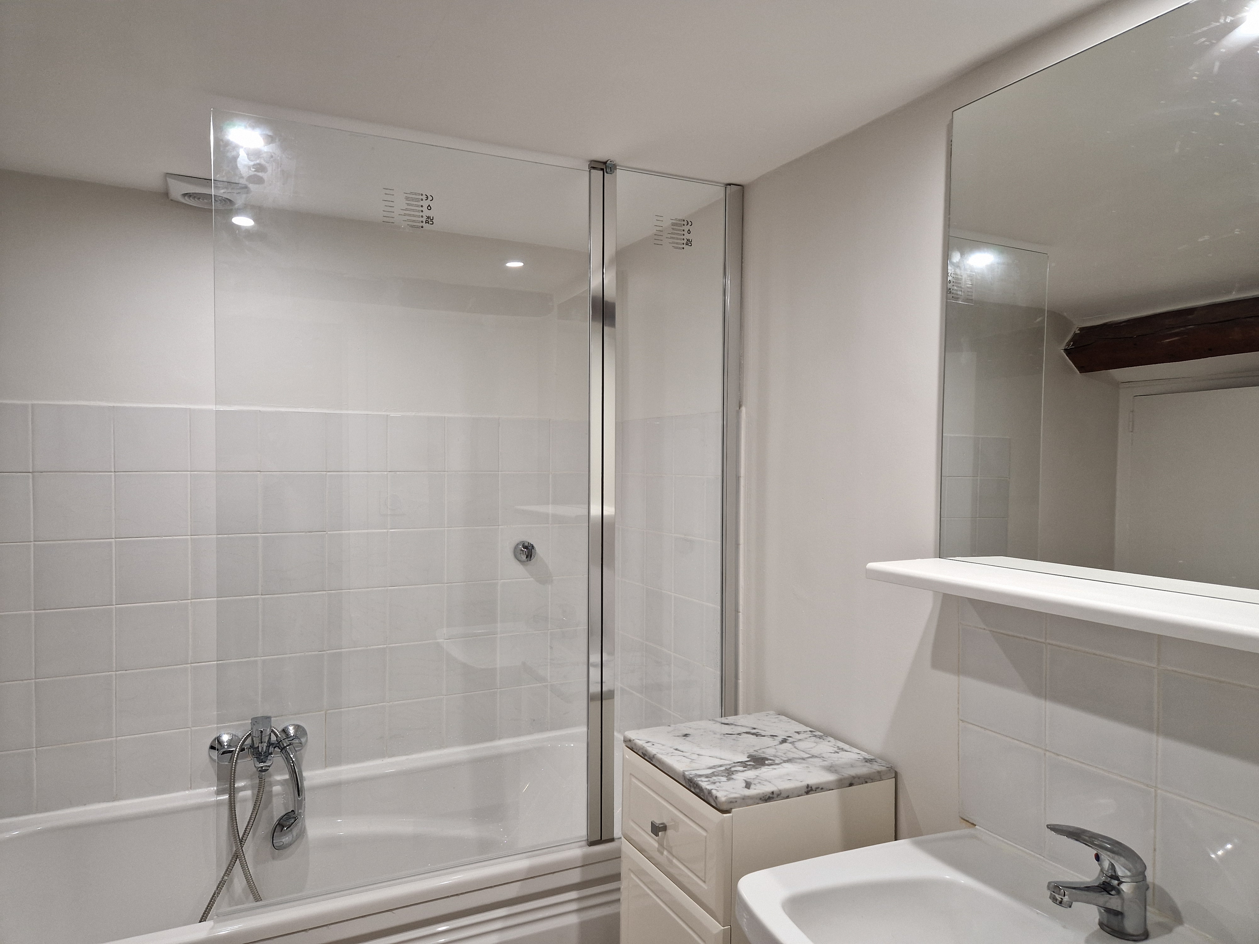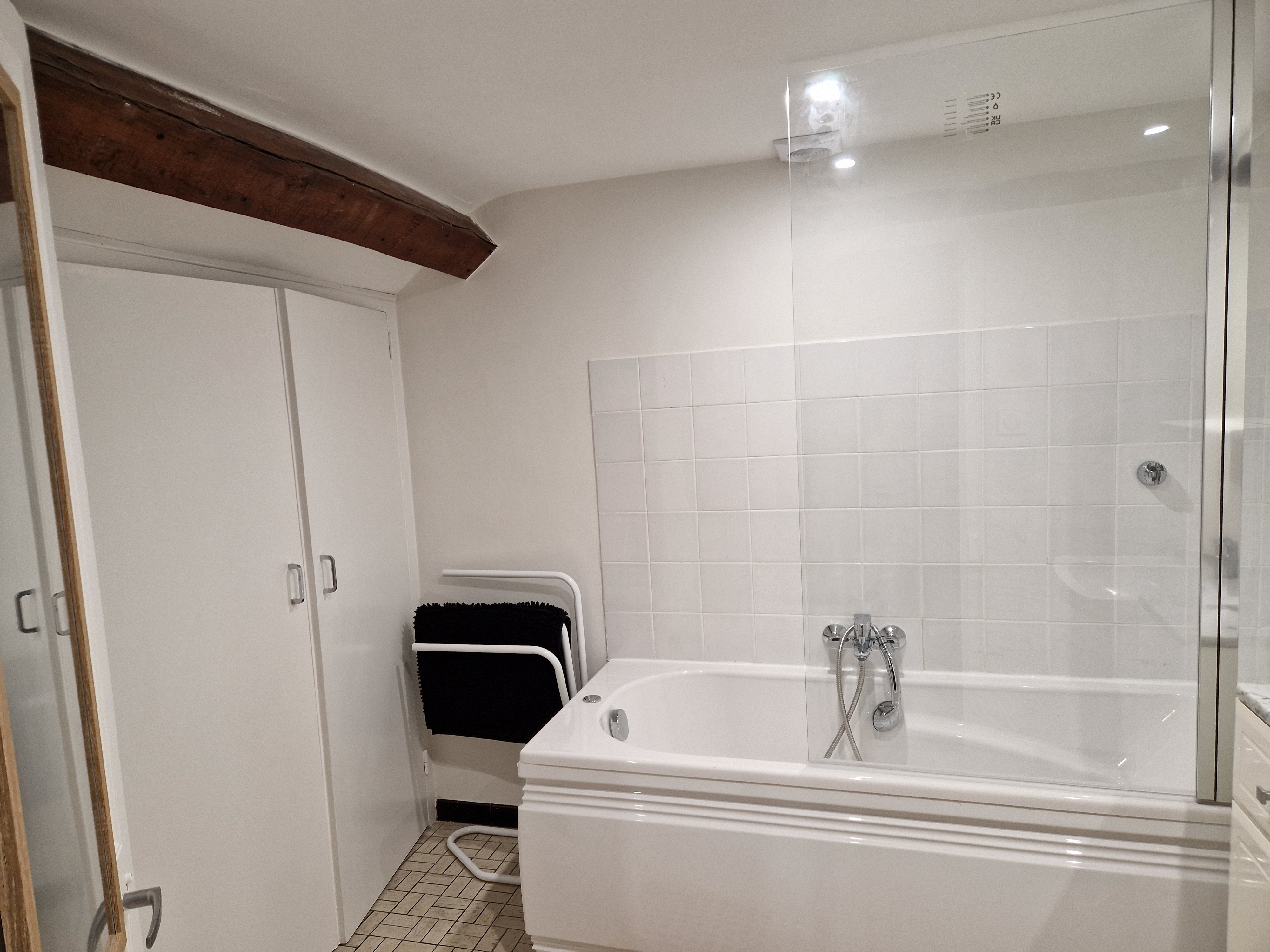 A l’étage d’une maison, Chambre double avec salle de bain privative avec WC, coin petit dej avec frigo, bouilloire et machine à café,