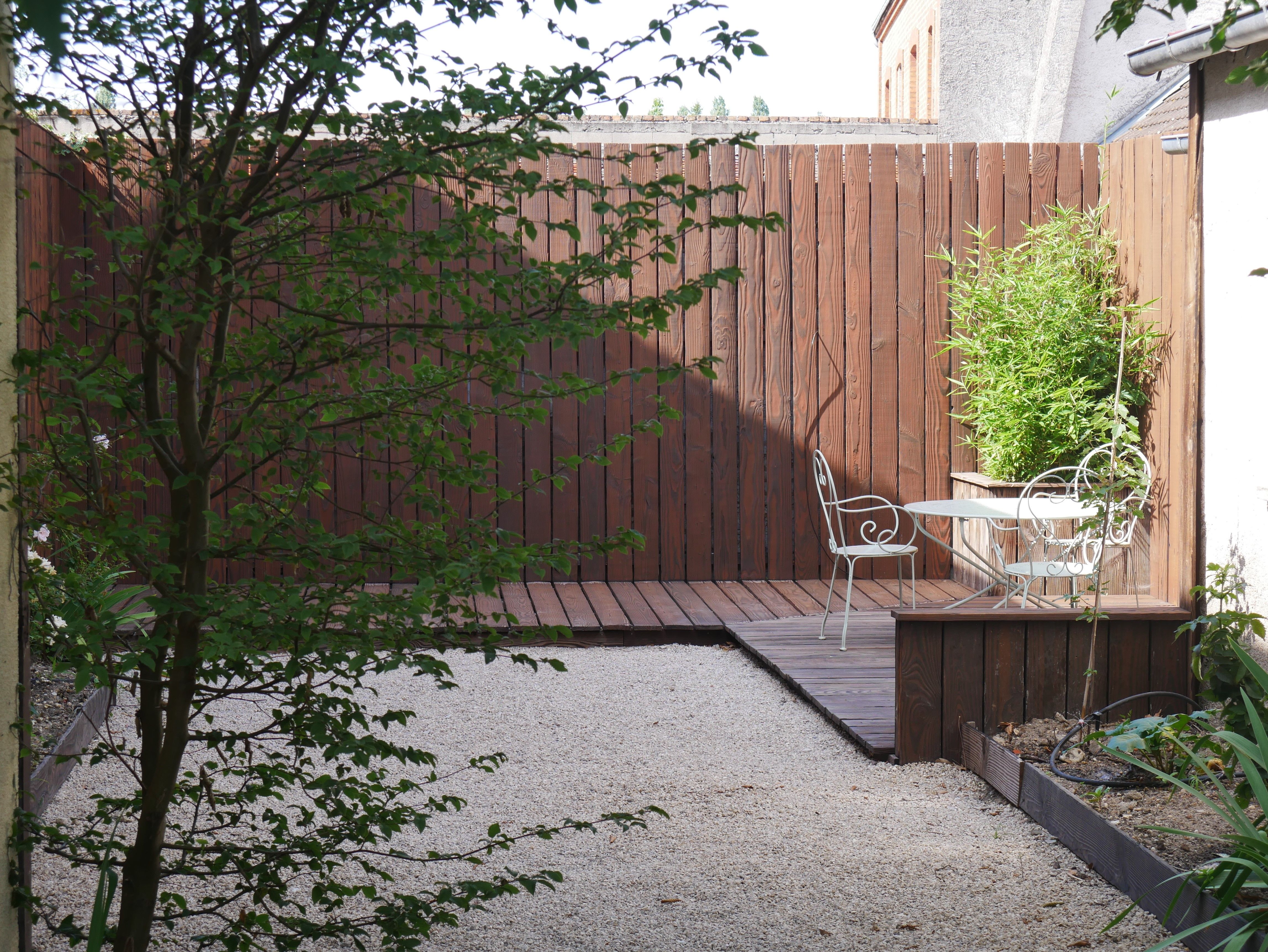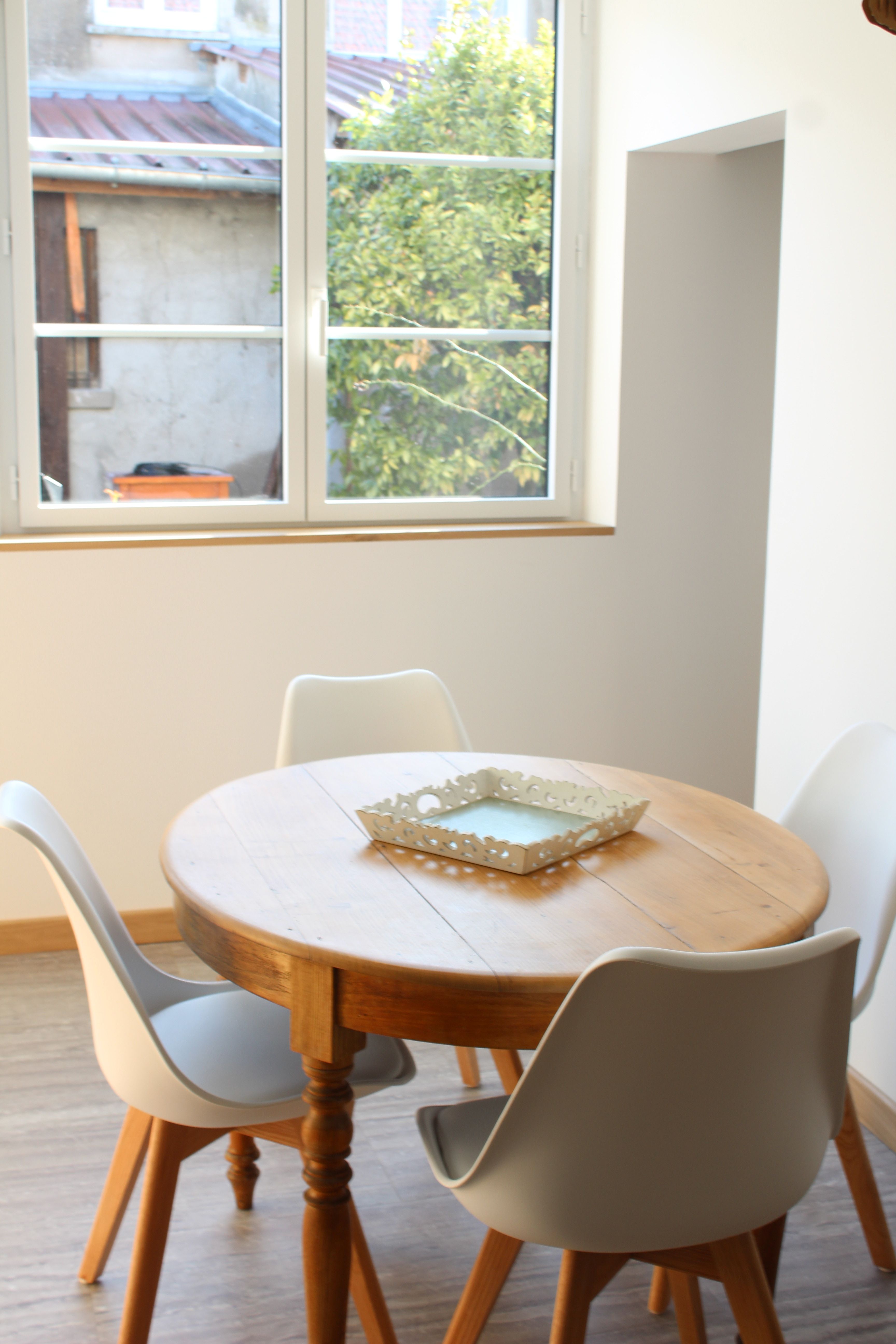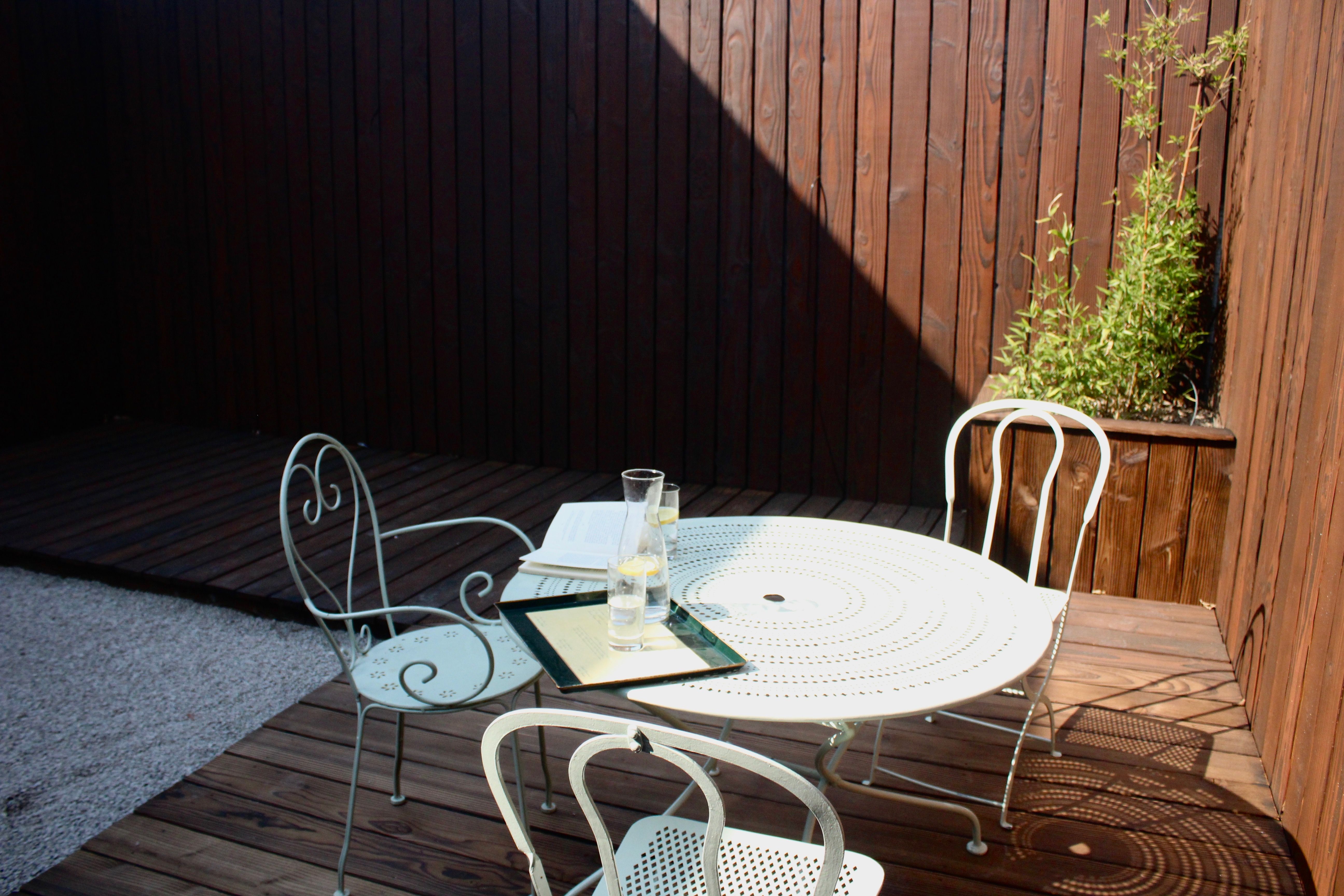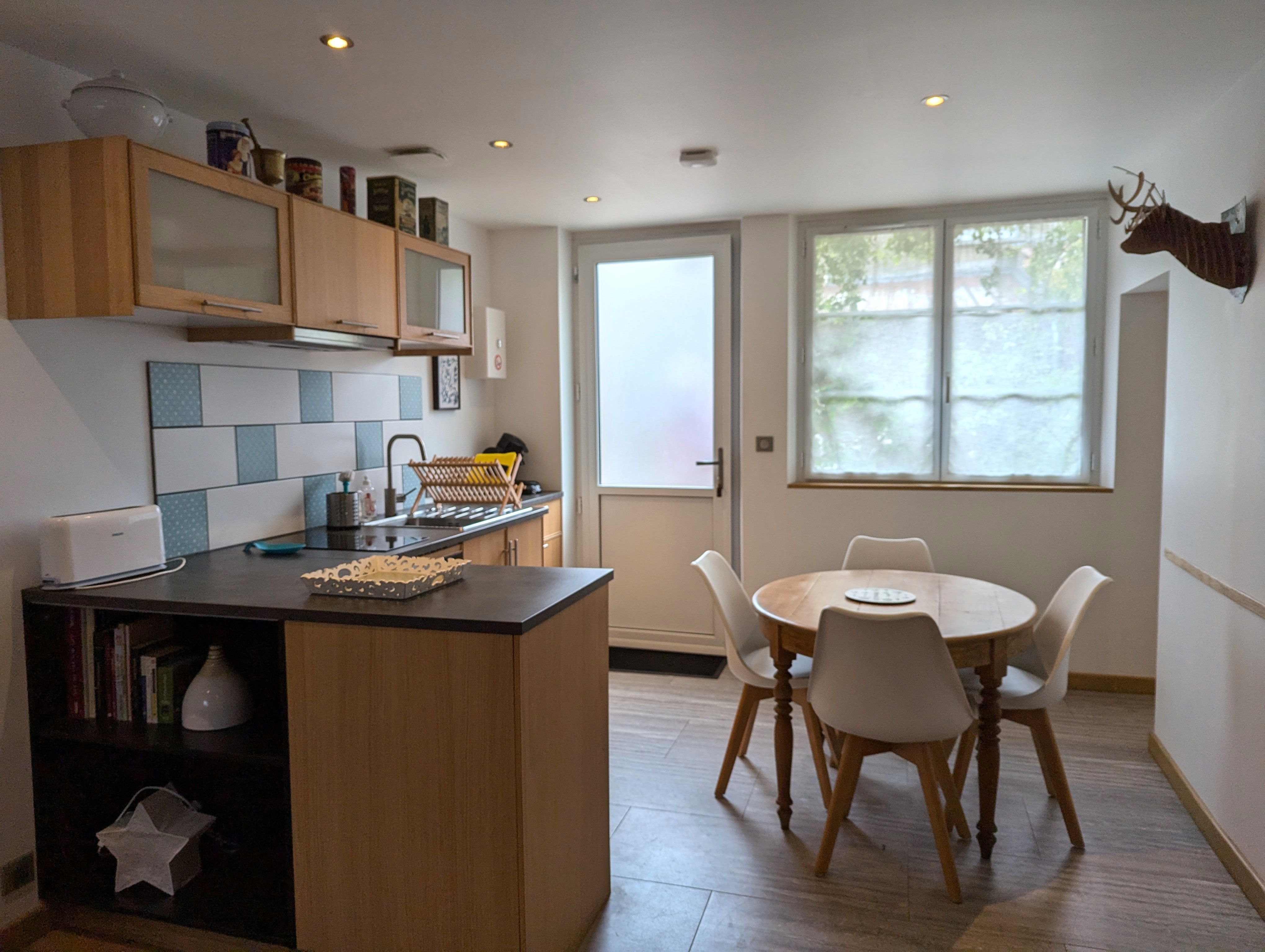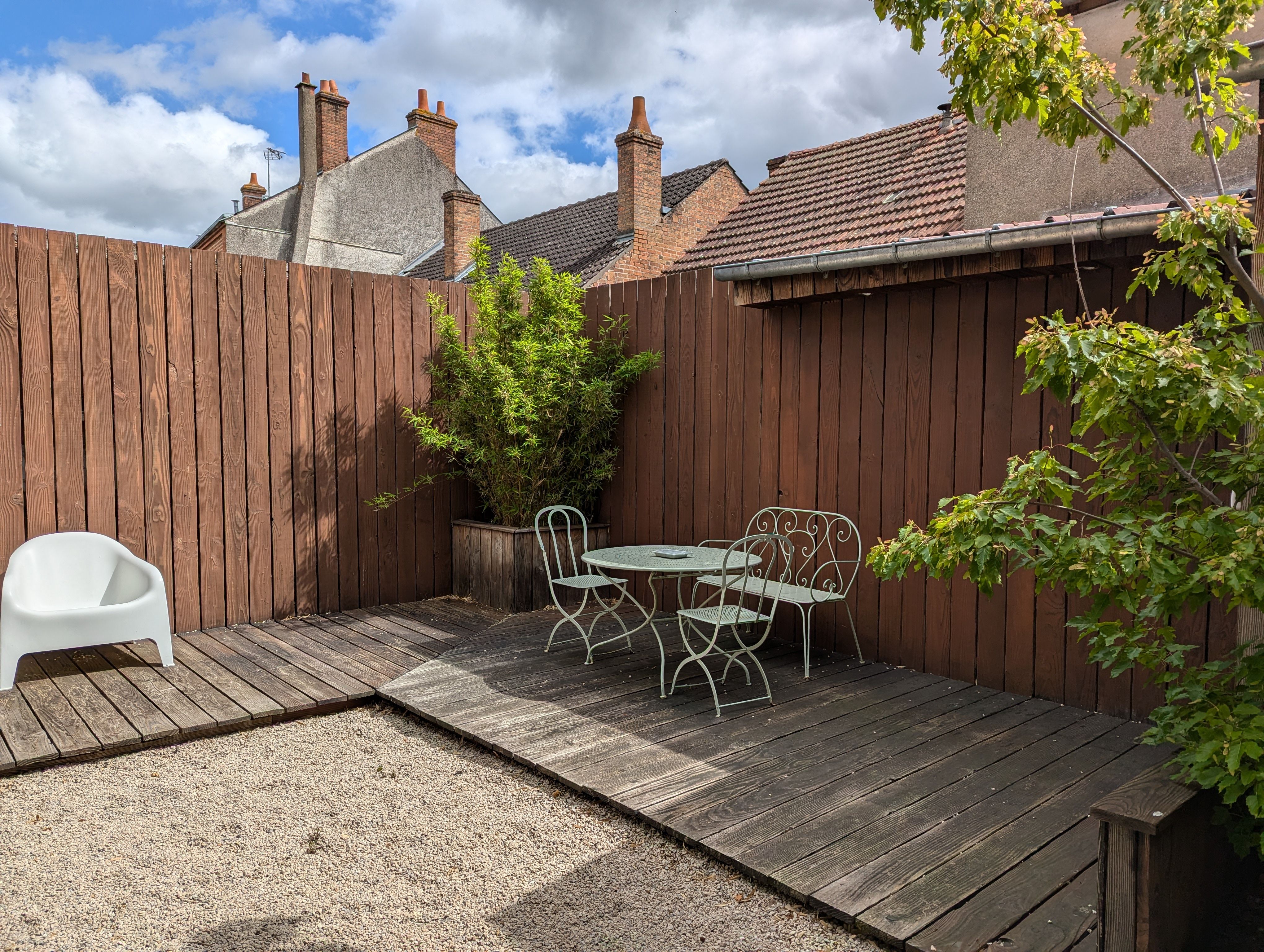 Vous profiterez de la cour commune fermée par un portail avec terrasse privative devant, petit salon de jardin, barbecue gaz.