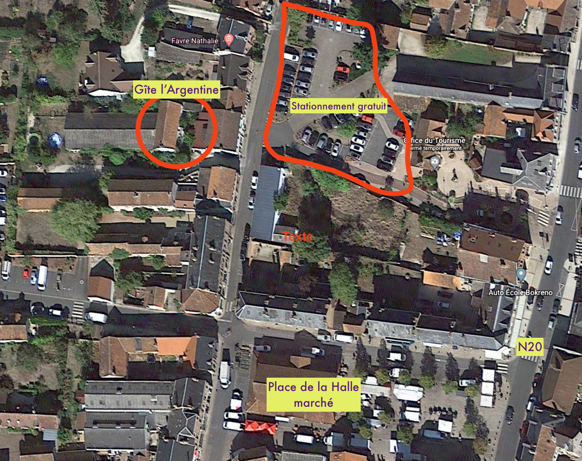 Stationnement public gratuit à côté du gîte (vous pourrez décharger sans problème vos affaires en vous avançant dans l’allée privée, puis retournerez vous garer sur le parking en face).