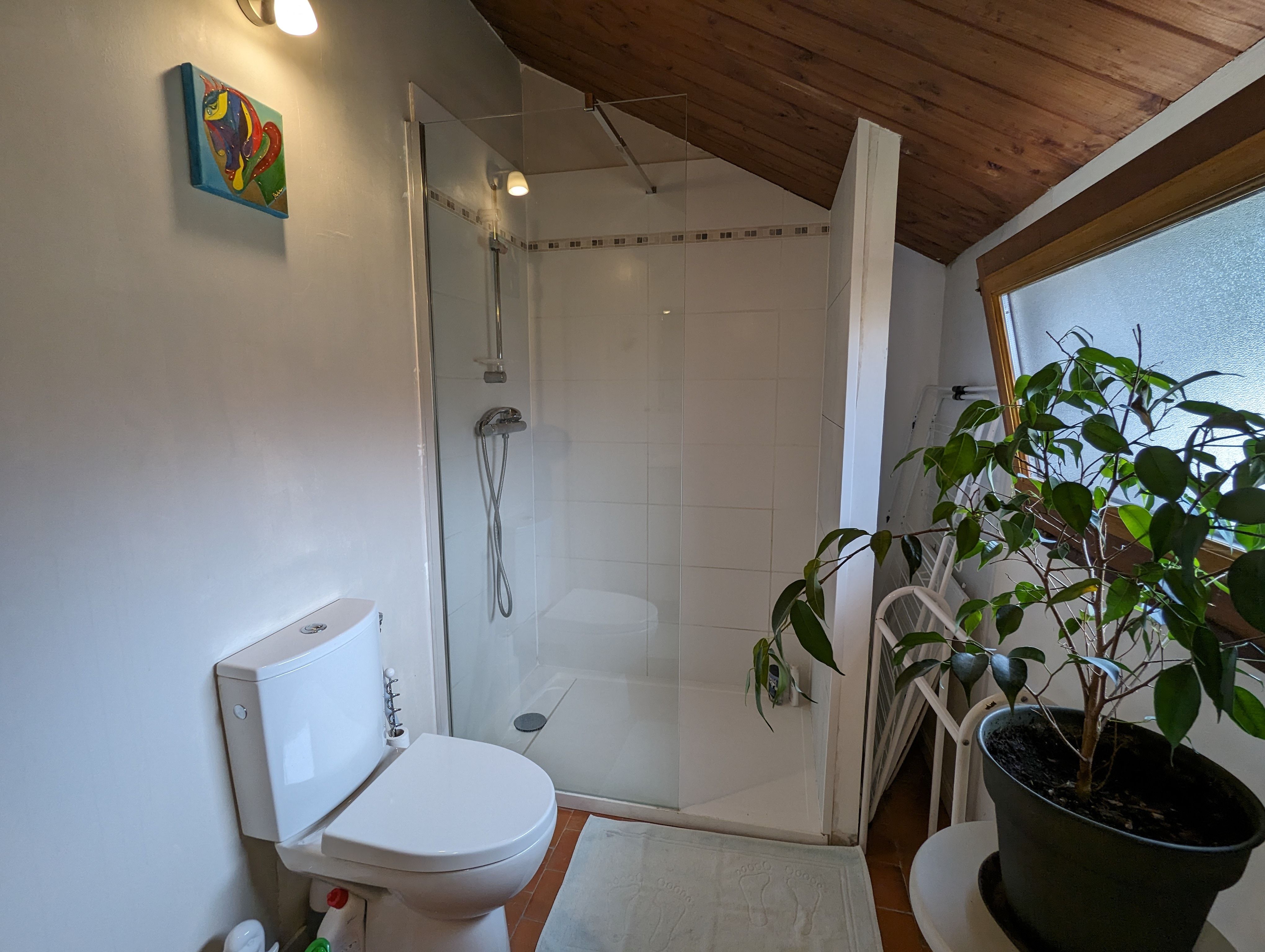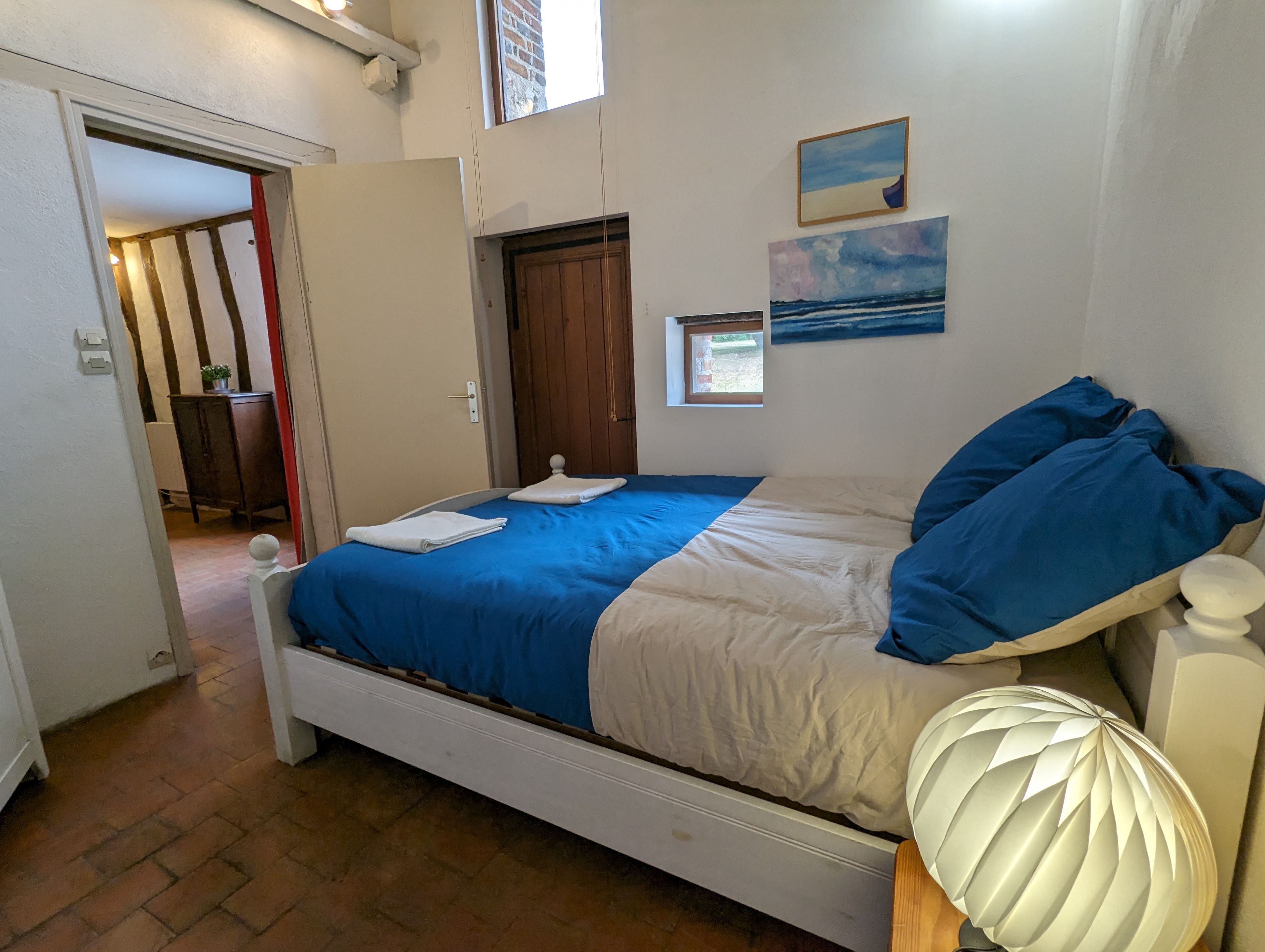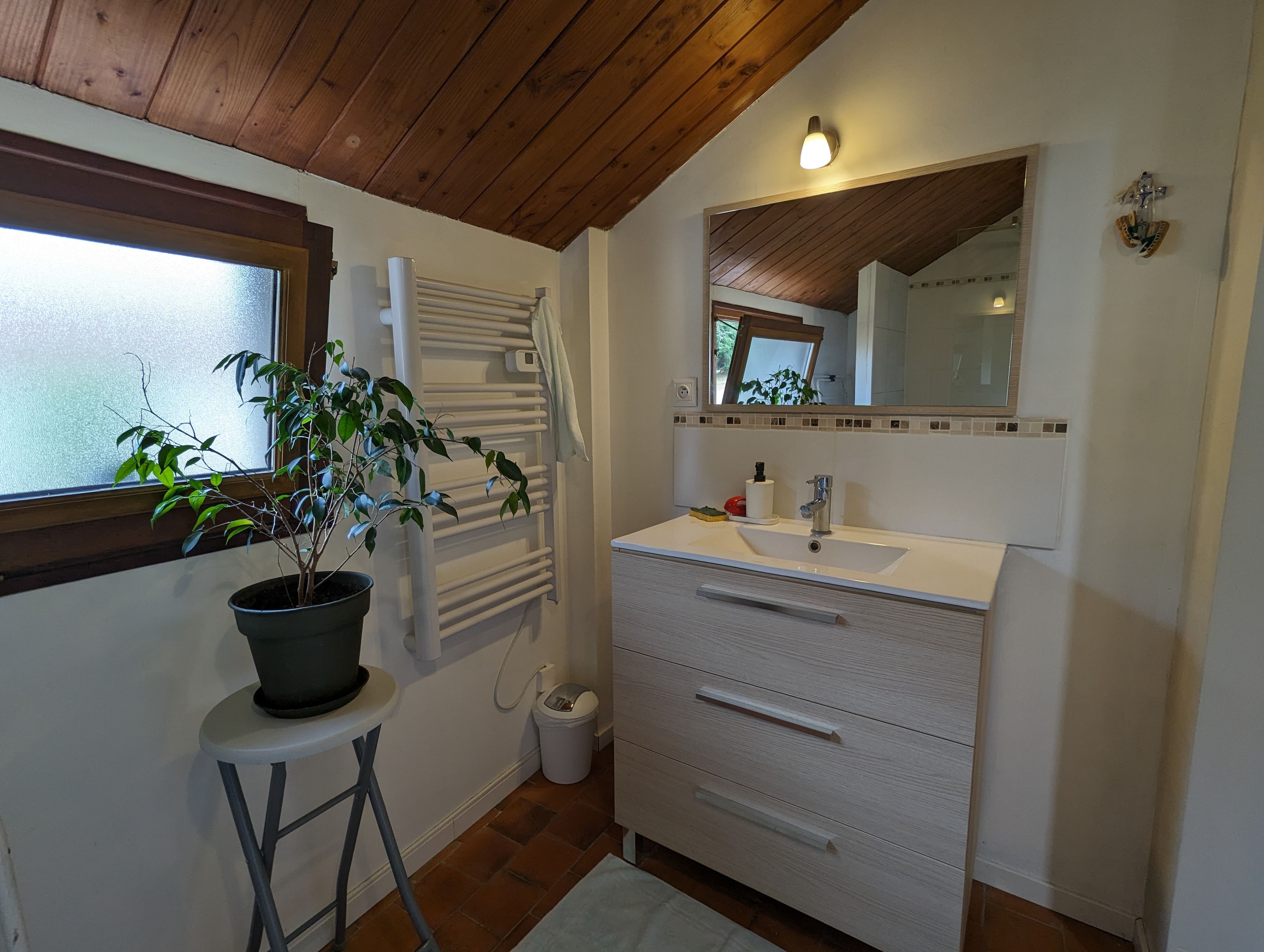 – Une seconde partie également en enfilade avec Chambre n°3 passante (1 lit de 140×190), Chambre n°4 communicante (2 lits de 90×190) et Salle d’eau n°2 attenante (douche, meuble lavabo, WC).
